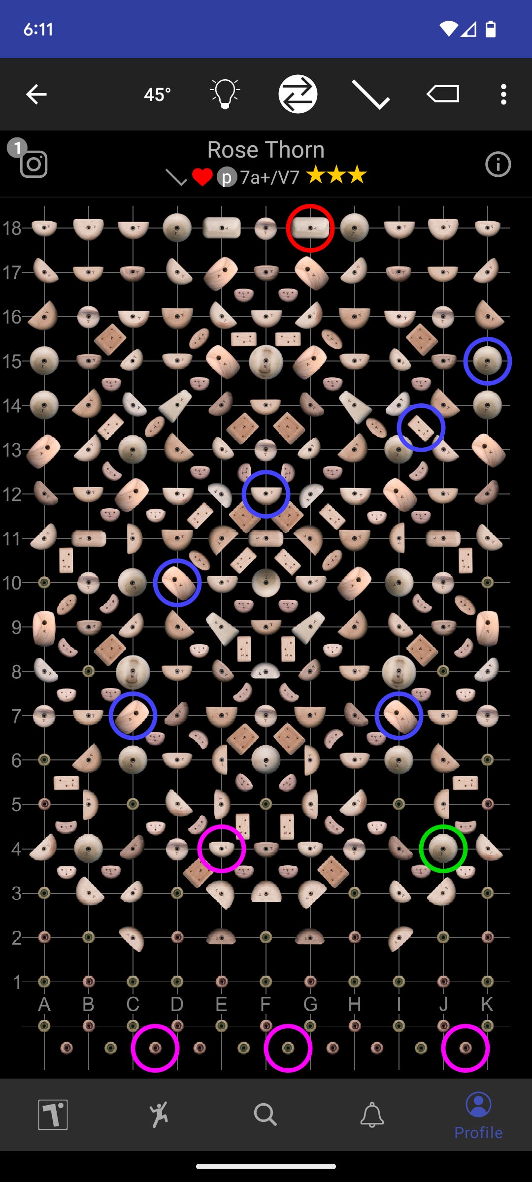 I was sharing the board with some other folks who were working on Rose Thorn, and I figured it out within like 3-4 attempts. I remember trying this problem during my first cycle as well, and being completely stumped by the twisting move to F12 (you’re not supposed to match).